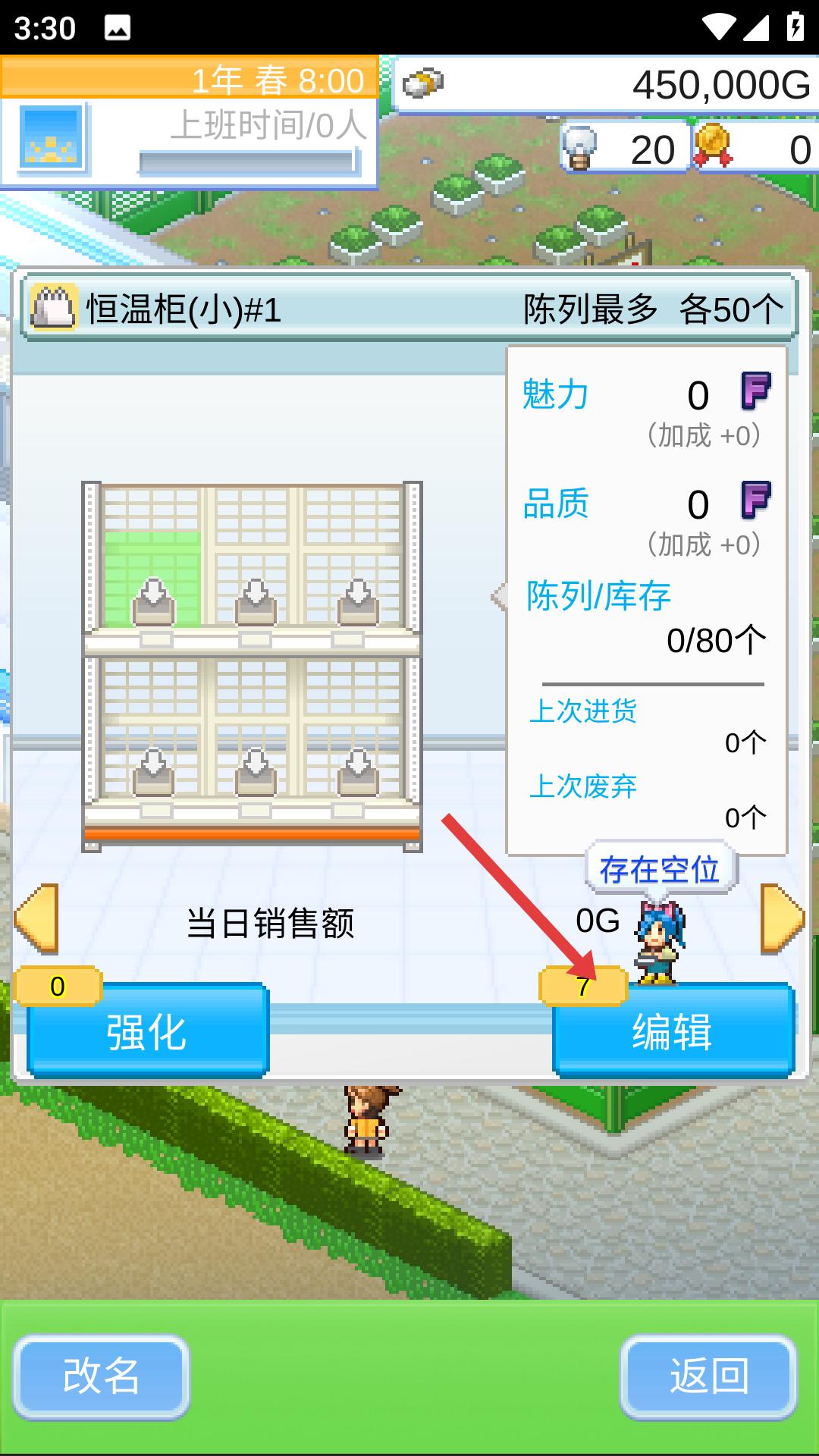2、設有店鋪擴建和裝修系統,可通過調整貨架布局提升顧客流通效率,墻面裝飾與燈光設計影響店鋪評價等級。
