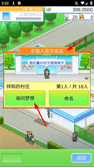 4、遇到新顧客到店的事件時,可點擊詢問夢想按鈕,了解顧客需求,助力優化便利店的經營服務。