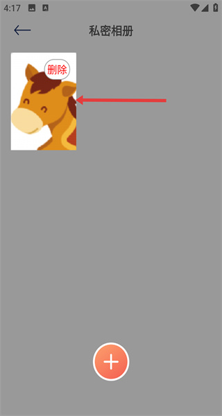 4、在添加照片的相關操作后,可進入私密相冊界面,在該界面可查看已有的私密照片,若要刪除某張照片,找到帶有刪除標識的照片并進行刪除操作。