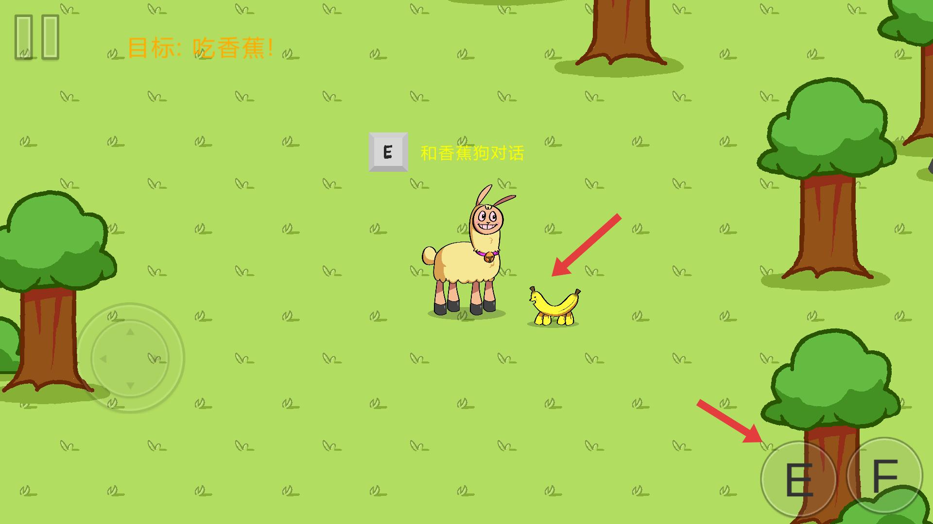4、靠近香蕉狗等交互角色時,點擊按鍵與它們對話,獲取任務信息或推進劇情發展。