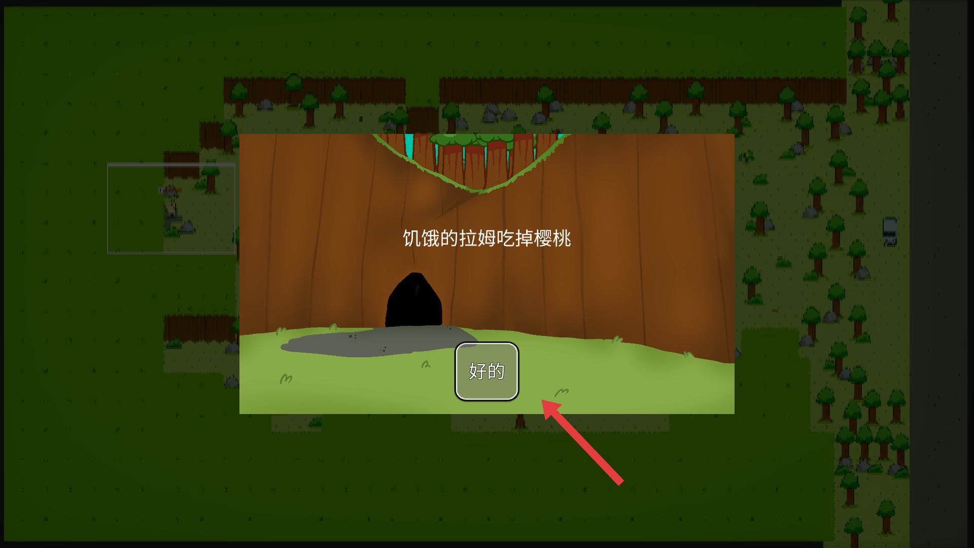 2、當靠近櫻桃等可交互物品時,點擊相應按鍵,讓小羊吃掉櫻桃,完成收集任務。