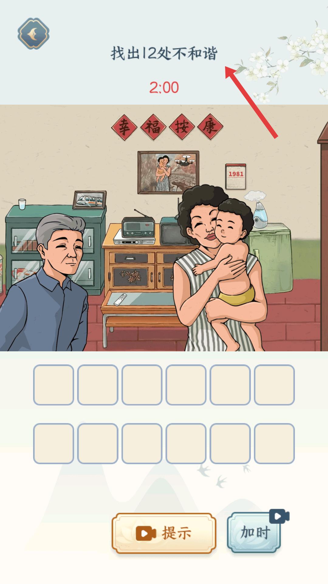 2、在規定時間內,仔細觀察場景中的每一處細節,找出與時代背景不符的物品。