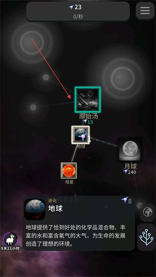 4、玩家可從原始湯開始逐步解鎖地球、月球等天體,推動生命從單細胞到多細胞解鎖生命科學之樹上的各類進化節點。