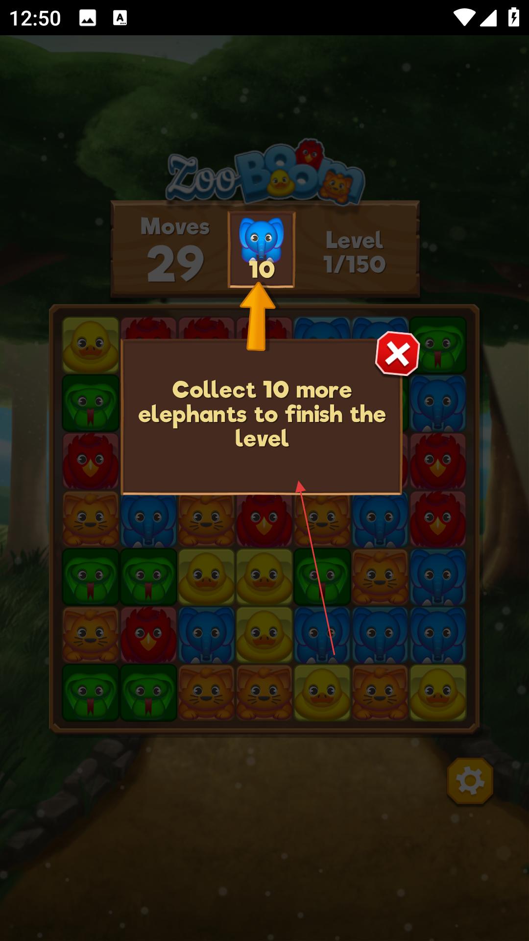 2、游戲中彈出收集大象的提示,明確要收集10只大象才能通關,據此在界面里專注尋找藍色大象方塊,為消除做準備。
