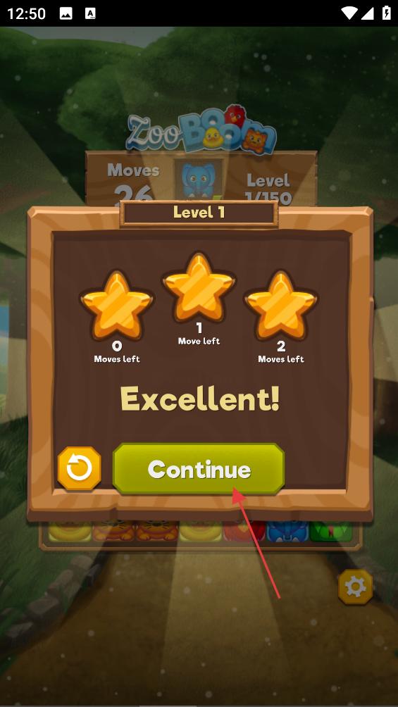4、完成所有收集任務后,關卡成功,在成功界面點擊綠色繼續按鈕,順利完成第一關,可進入下一關游戲。