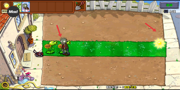 2、在關卡中收集陽光,種植向日葵生產陽光,再種豌豆射手等攻擊植物,對抗來襲僵尸。