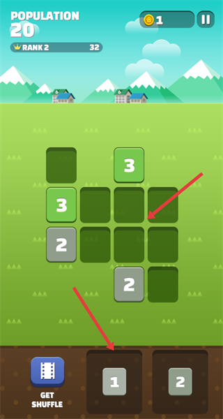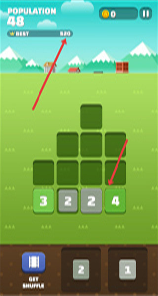 3、不斷放置相同數字的方塊進行合并,提升方塊等級,以此解鎖更高等級的建筑,擴大小鎮規模。