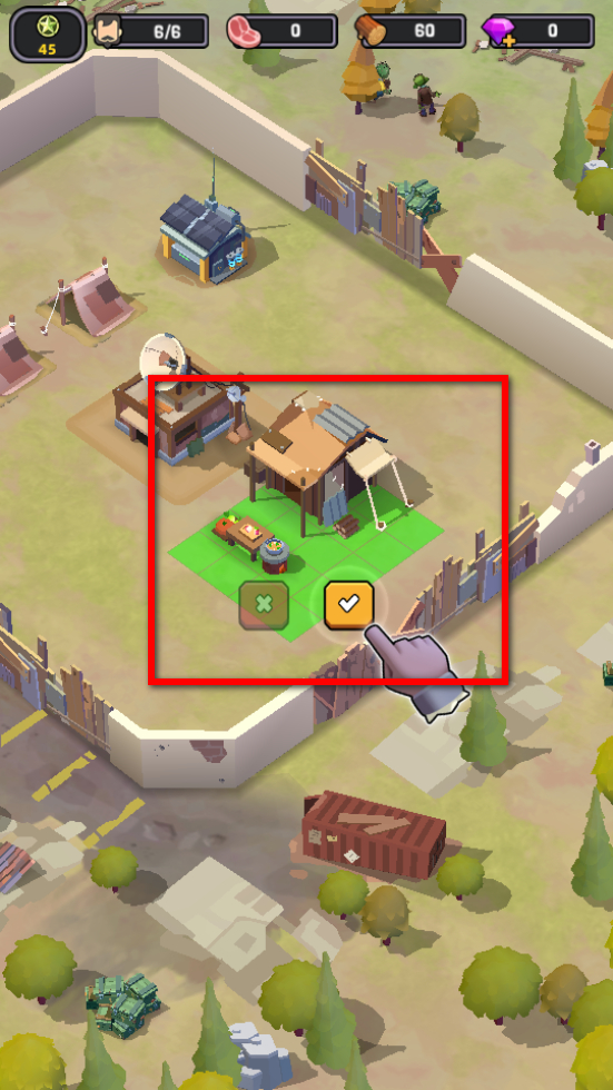 2、在建造食堂時,選擇合適的建造位置,點擊對勾確認建造,如此食堂便能順利開始建設。