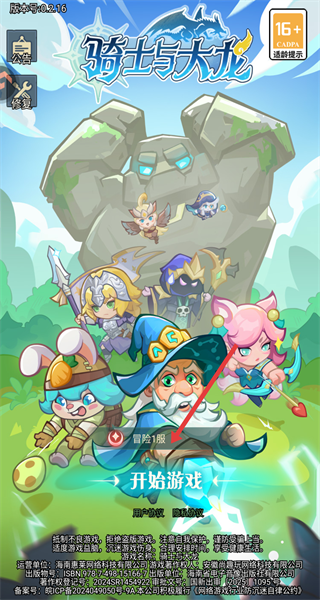 1、進入游戲,選擇服務器后點擊開始游戲,開啟冒險之旅。