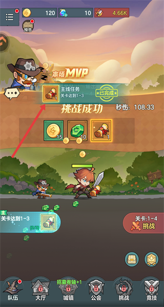 2、玩家加載完畢后,進入關卡界面,需要點擊挑戰按鈕,就可以開啟戰斗。