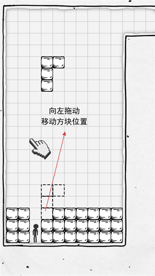 2、向左或向右拖動方塊,將其移動到下方合適的位置,確保方塊能準確落入空格,為壓扁火柴人做準備。