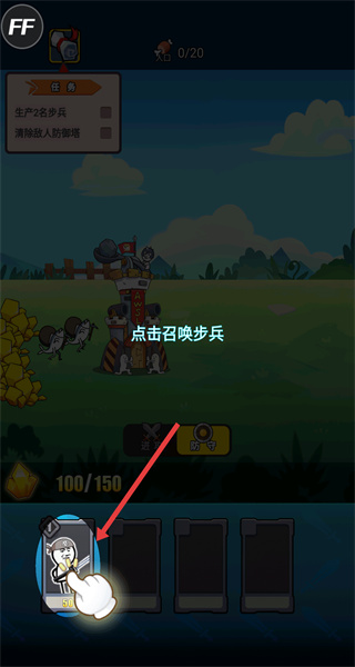 2、接著召喚步兵,在戰斗界面點擊步兵卡片,部署步兵參與戰斗,為進攻做好準備。