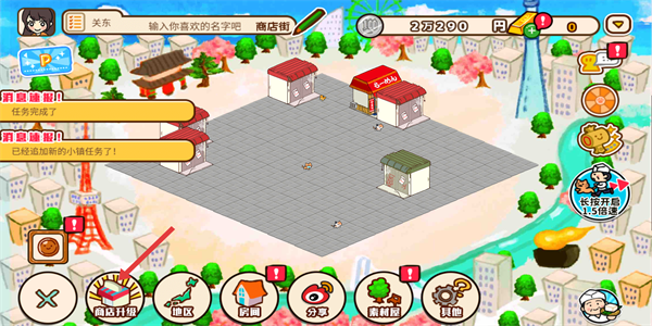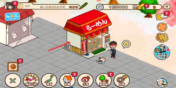 1、進入商店街游戲場景,可見初始的店鋪布局,開啟商店街的建設與經營之旅。