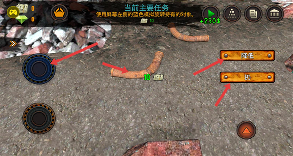 3、做旋轉對象任務拾取管道后,用左側藍色模擬搖桿旋轉調整角度,操作時注意拖屏旋轉視角配合搖桿精準控制,完成任務拿獎勵解鎖新內容。