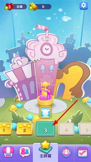 1、在帶有糖果建筑的場景里,點擊數字3對應的關卡按鈕,進入該關卡開啟挑戰。