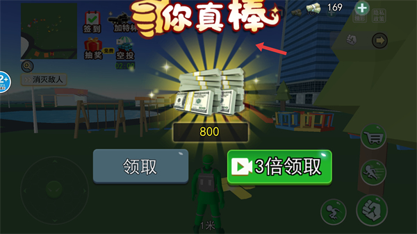 4、完成任務后可領取獎勵也可選擇看廣告三倍領取獎勵,獲取的金幣可用于購買道具或參與其他游戲活動提升角色能力。