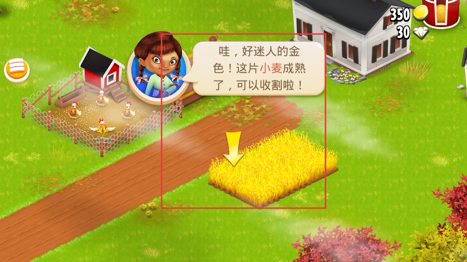 1、在農場中種植小麥,待小麥成熟后進行收割,獲取農產品,為農場經營積累資源。