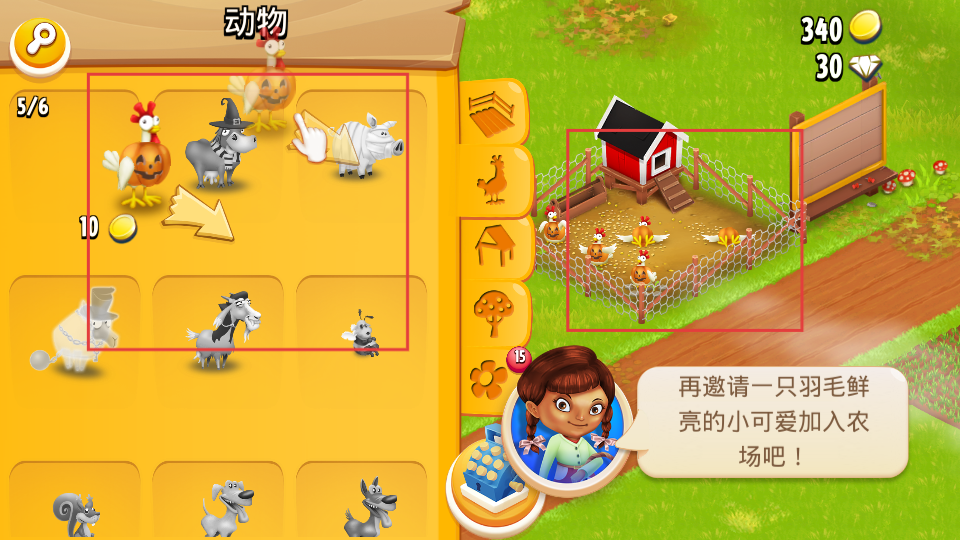 3、邀請新的動物加入農場,擴大動物養殖規模,提升農場的經營效益,增加農場的活力。