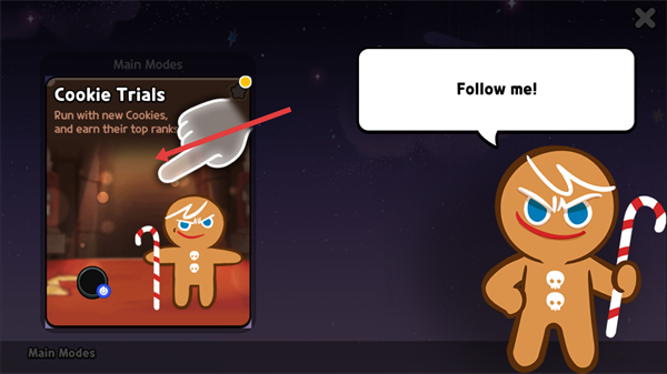 2、選擇CookieTrials模式,該模式可使用新餅干角色進行奔跑,獲取角色的最高排名獎勵。