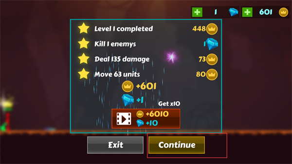 4、完成關卡后可獲得金幣、鉆石等獎勵,以及星級評價點擊Continue繼續挑戰下一關,讓后續戰斗更具優勢。