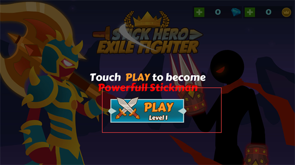 1、點擊PLAY按鈕進入Level1開始游戲,化身為強力火柴人,開啟火柴人放逐英雄的冒險戰斗之旅。