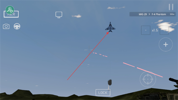 4、通過LOCK功能鎖定空中目標如無人機、戰斗機,利用瞄準系統發射火力進行打擊,體驗精準的防空攔截操作。