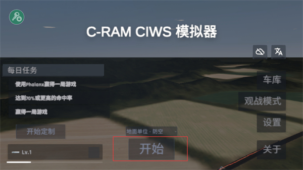 2、玩家在主界面選擇防空模式,點擊開始進入游戲,開啟陸基密集陣系統的防空作戰模擬。