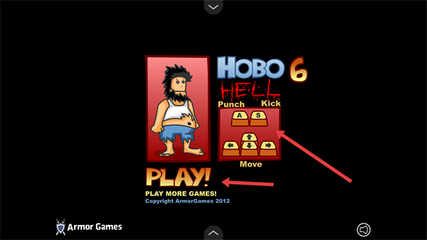 1、點擊開始游戲熟悉操作按鍵A和S鍵分別對應拳打和腳踢,方向鍵控制移動開啟流浪漢的地獄冒險之旅。