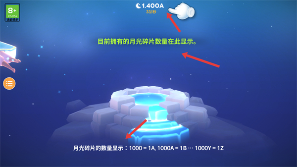 1、了解月光碎片的數量顯示規則關注界面上方的月光碎片數量,熟悉游戲的資源系統為后續操作做準備。