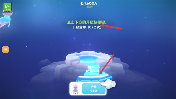 2、點擊下方的升級快捷鍵升級露娜提升角色等級,按照提示完成升級操作增強角色能力。