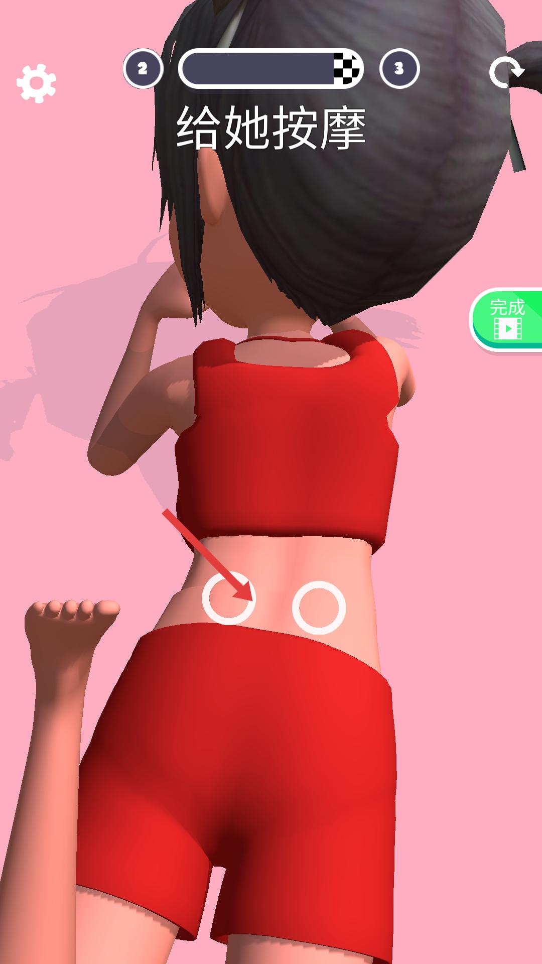 2、根據箭頭指示,點擊角色腰部區域,進行按摩操作,提升角色舒適度,推進游戲進程。