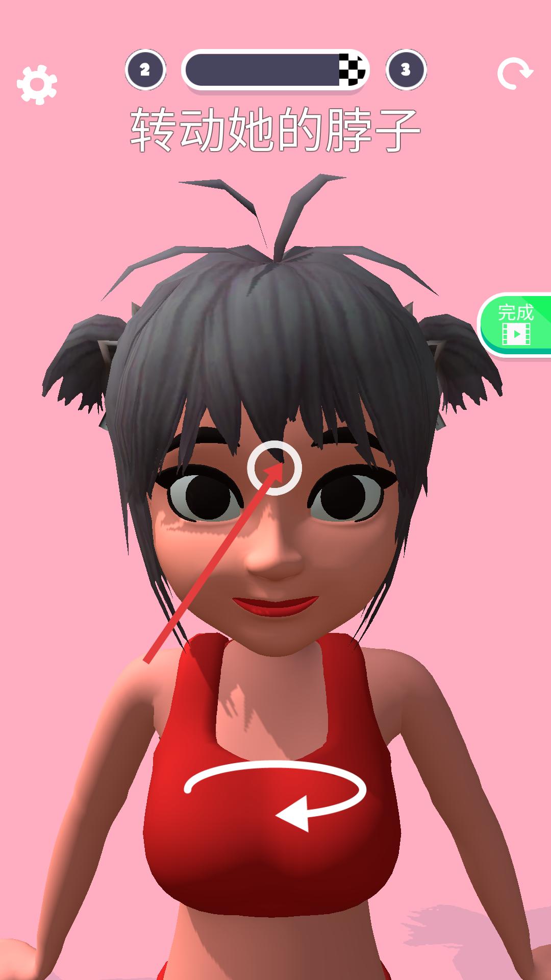 3、轉動角色脖子,調整頭部姿態,提升角色舒適度,完成該環節的互動任務,解鎖后續內容。