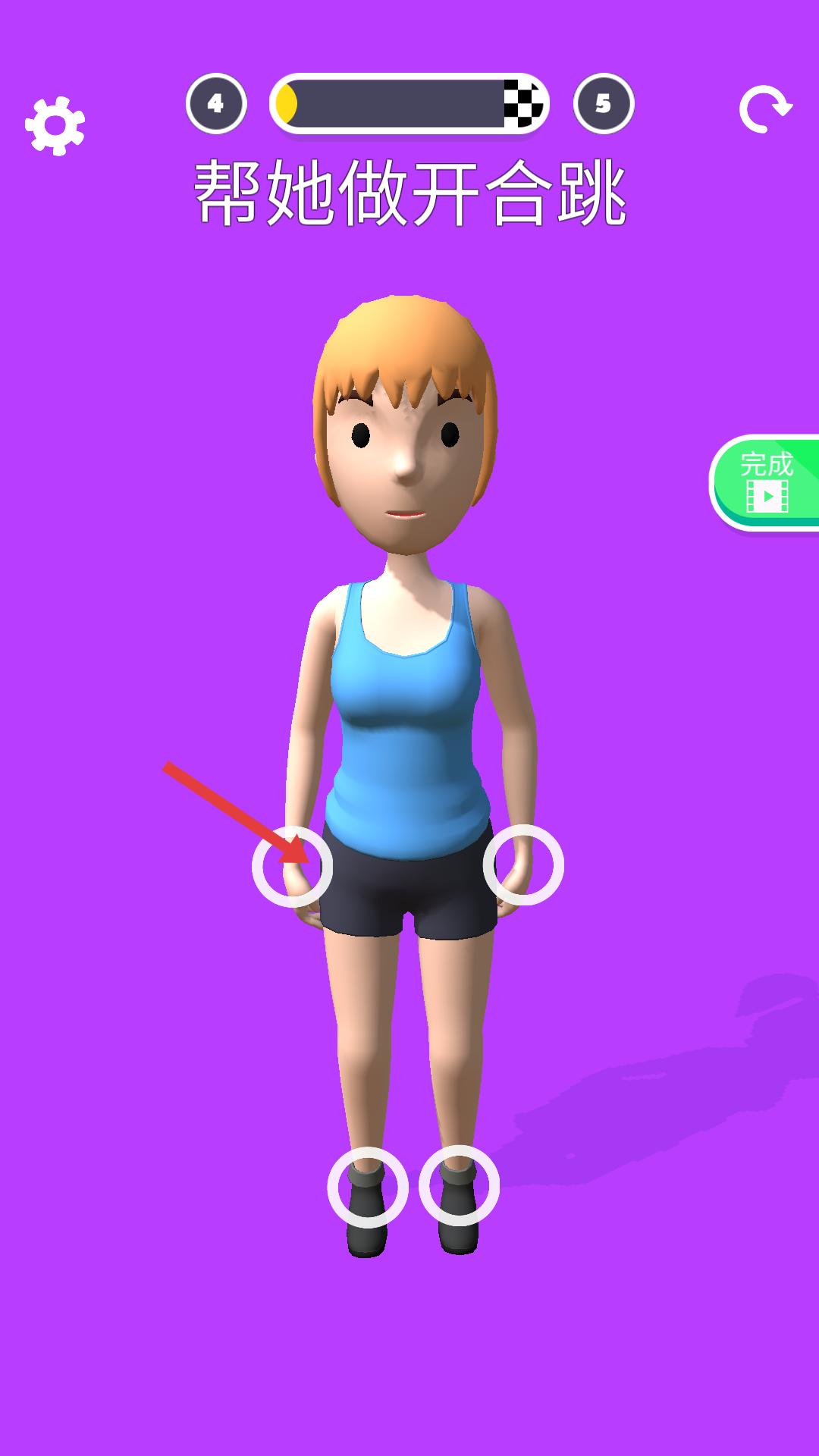 4、操作角色的四肢,幫她完成開合跳動作,鍛煉角色身體,完成互動,提升游戲進度。