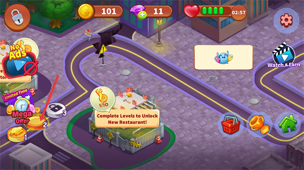 4、合理利用鉆石和金幣資源,購買增益道具和解鎖新餐廳,優化餐廳運營,實現收益最大化,推動游戲進程。