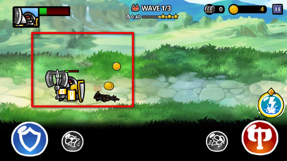 2、在戰斗中操控騎士擊敗敵人,敵人被擊敗會掉落金幣,收集金幣可用于后續強化等操作,注意應對一波波敵人的進攻。