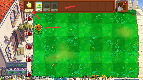 2、了解初始植物豌豆射手、向日葵、堅果的作用豌豆射手是第一道防線,向日葵生產陽光堅果提供防御根據陽光合理選擇種植。