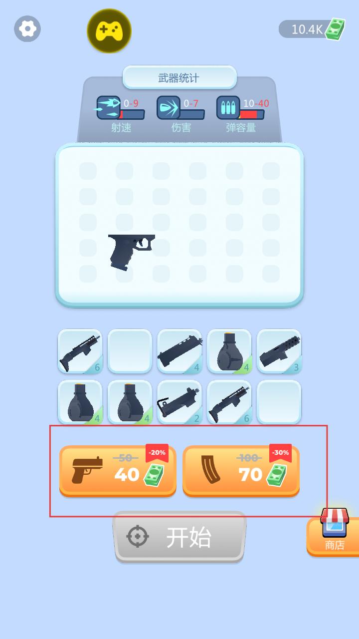 2、在商店用鈔票購買手槍、彈夾等部件,利用折扣優惠提升武器戰力,為后續戰斗做好裝備準備。