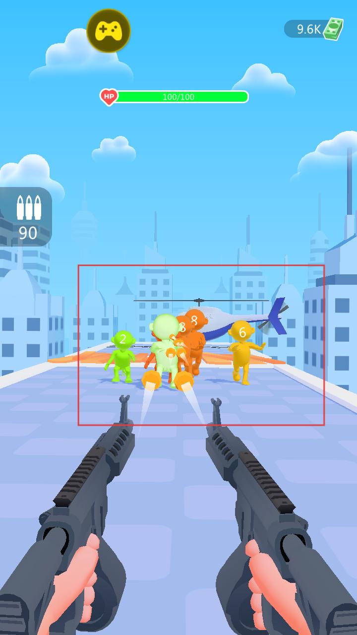 4、進入城市戰場,操控武器射擊不同顏色的敵人,留意自身血量,在充滿挑戰的戰斗中努力生存,體驗射擊樂趣。