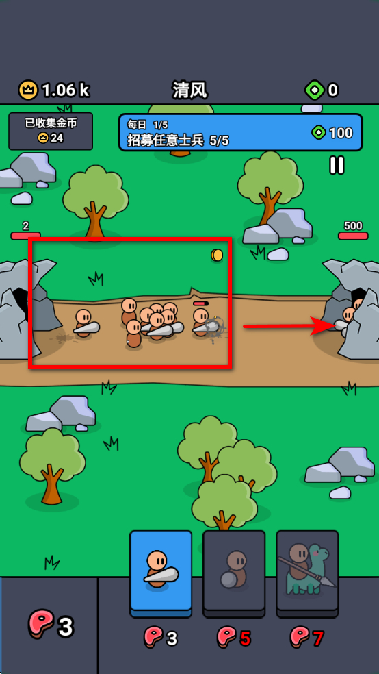 4、不斷招募士兵進攻敵方洞穴,擊敗洞穴內的士兵可占領洞穴,獲取更多資源,同時壯大己方勢力。