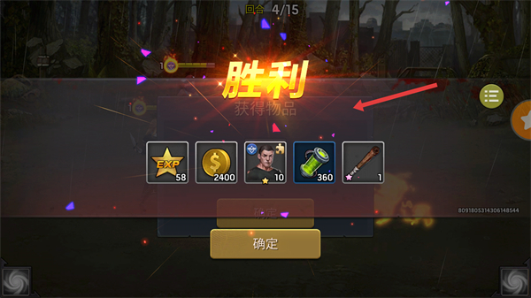 4、戰斗勝利后可獲得經驗金幣和道具等獎勵,點擊確定領取獎勵提升英雄實力為后續戰斗做準備。