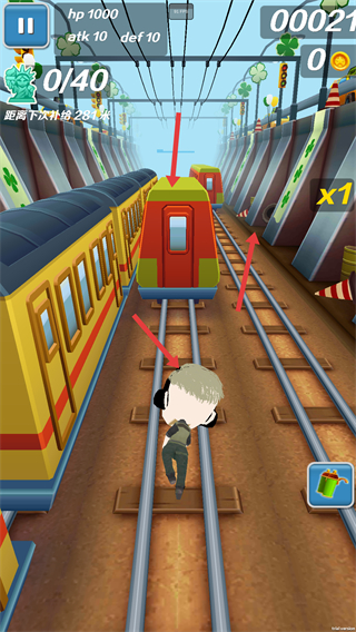 2、在軌道上奔跑躲避火車等障礙物留意角色的生命值和屬性,掌握移動和躲避的基本操作推進游戲進程。