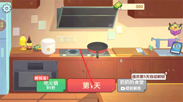 1、點擊第1天,進入廚房烹飪場景,開啟烹飪挑戰之旅,可在游戲中學習制作各類菜肴。