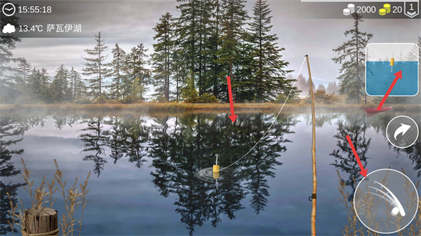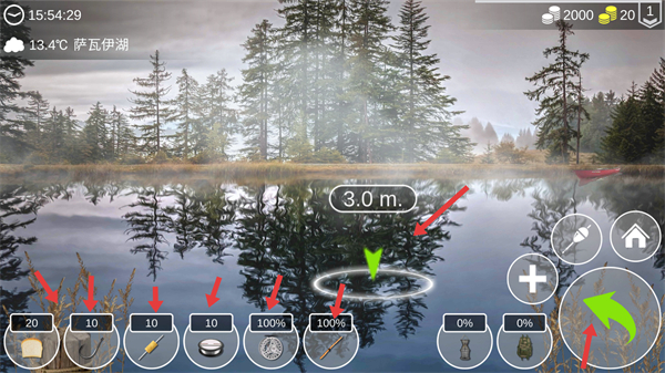2、在釣魚場景中查看裝備狀態調整釣魚的深度和裝備,確保裝備的有效性提升釣魚的成功率。