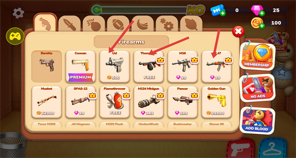 2、武器界面有多樣槍械標FREE的可直接用,PREMIUM的可能需特殊條件解鎖,點擊心儀槍械確認裝備,不同武器攻擊效果射速有差異。