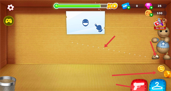 3、裝備好武器后瞄準提示板目標射擊,射擊時注意彈道軌跡擊中后會掉落金幣記得收集,射擊完畢可點下方按鈕切換武器。