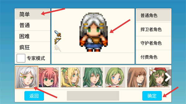 1、選擇簡單難度和普通角色點擊確定創建游戲角色,熟悉角色創建界面的功能選項開啟游戲冒險之旅。