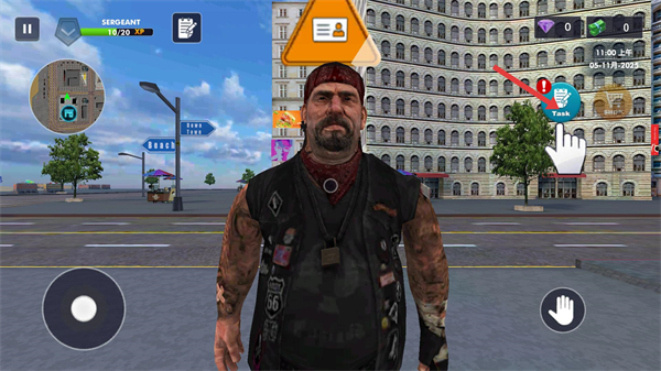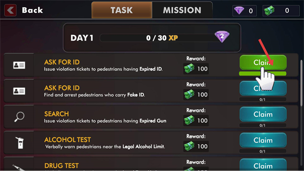 1、點擊右上角TASK按鈕,進入任務界面查看可接取的任務類型,領取鈔票購買東西。