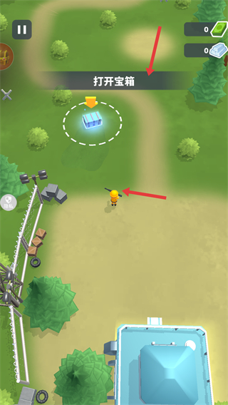 1、打開寶箱獲取資源熟悉資源收集方式,為后續建造和戰斗積累物資開啟游戲的資源獲取流程。