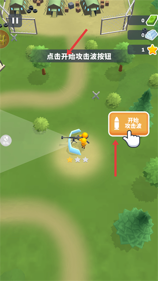 3、點擊開始攻擊波按鈕發起進攻熟悉戰斗觸發機制,利用已建造單位打擊敵人推進游戲進程。
