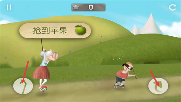 3、在跑酷過程中利用左側和右側的操作按鈕,完成搶到蘋果的任務目標,提升游戲得分。